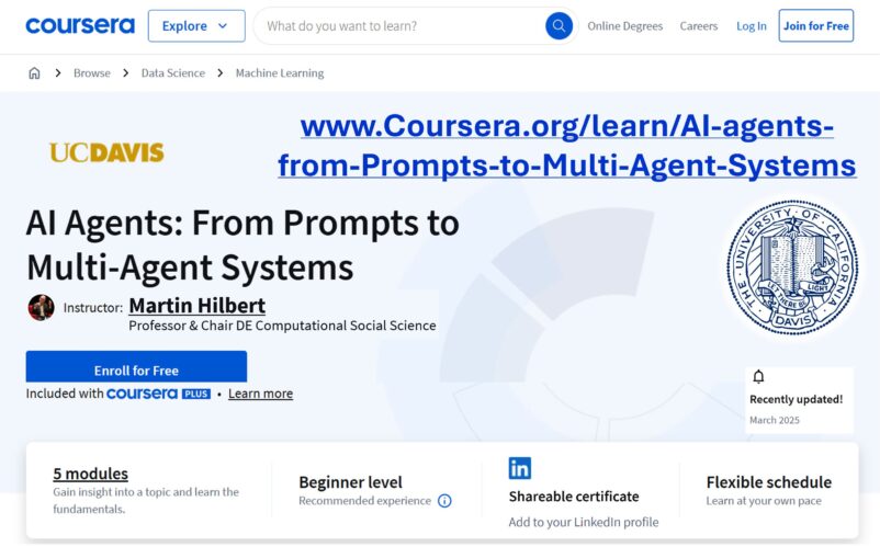 This Open Online course unlocks the transformative power of AI agents to boost your productivity and job satisfaction. It...